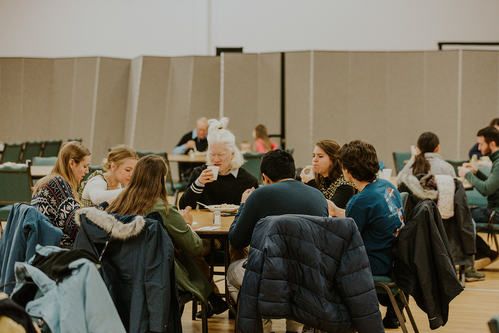 Twice a semester we gather for a home-cooked meal with college students and our adoptive families. This takes place in the family center after the 11am worship gathering.